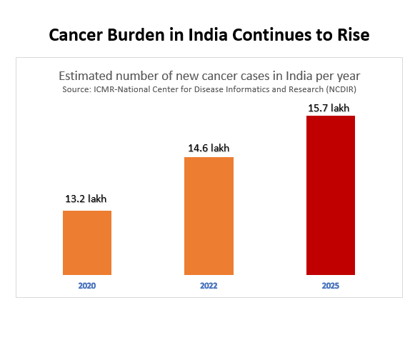 The latest national cancer statistics indicate that approximately 14 lakh cancer cases were diagnosed in India in 2022, marking a 5% rise in cancer cases from 2020.